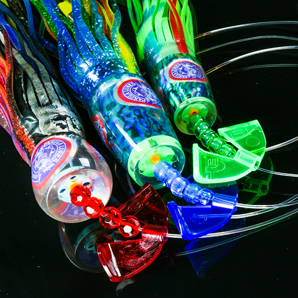 "Really impressed with the way they ran off the flat lines. Caught mahi running them on top. Pulled the clear on the flat line behind the dredge 5-6knots. Ran beautifully til it 'got ate'! Ran the blue in front of one of my blue and silver cherry bombs on the long rigger, 5-6knots it made a lot of commotion! It also got eaten"